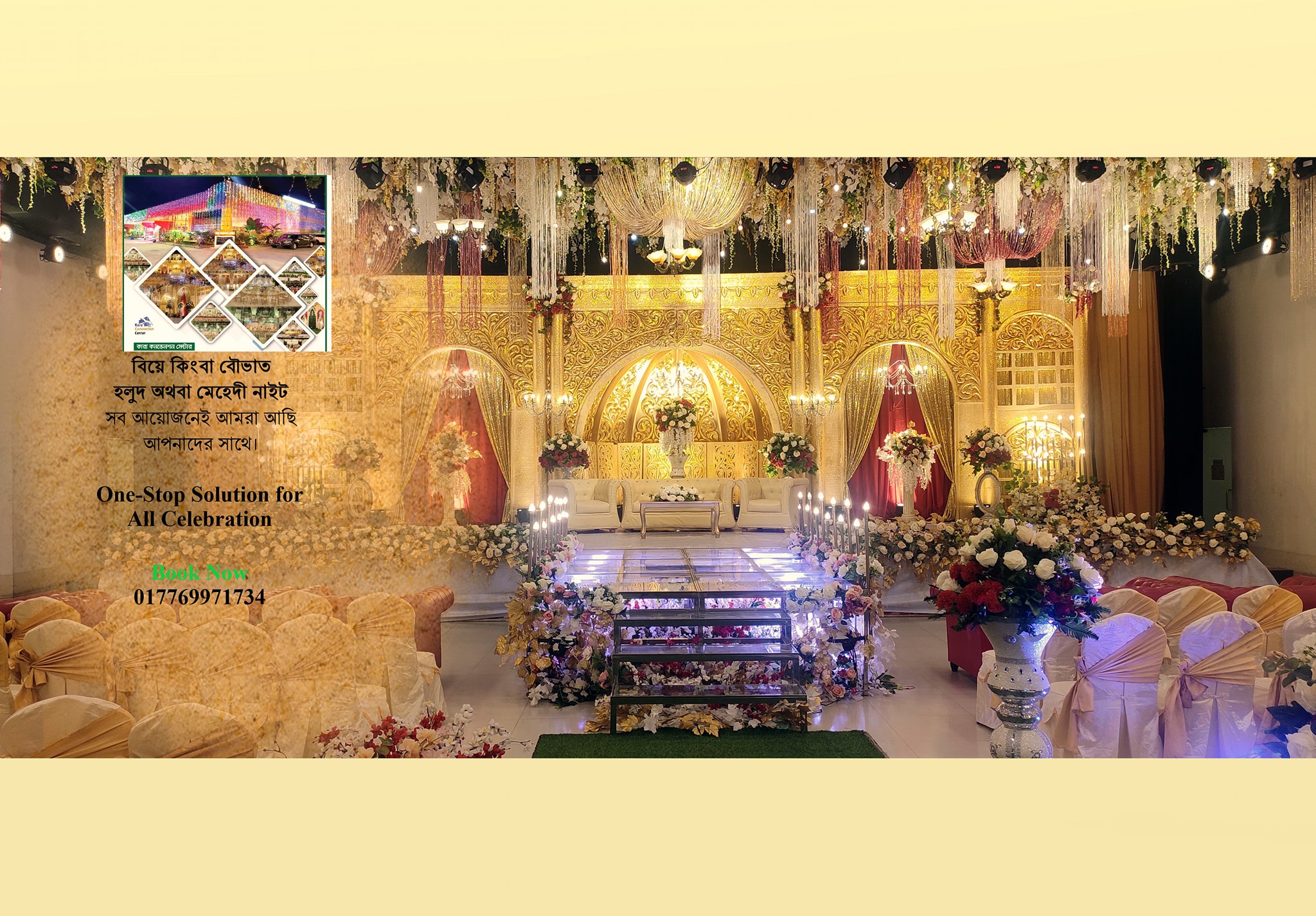 রাজকীয় সাজসজ্জা ও বিলাসবহুল পরিবেশে আপনার স্বপ্নের বিয়ের দিনটি সারাজীবন মনে রাখুন।